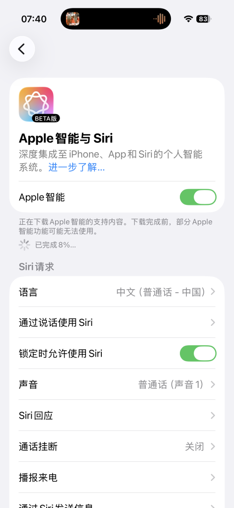 虽然苹果已经将其下线,但我在今天早上确实在设置里看到了苹果智能的选项,我第一时间下载了Apple智能所需要的支持内容。